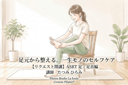 「最近、脚が疲れやすくなった」 「靴底の減り方に偏りがある」 「股関節が硬くて、歩きにくい気がする」 毎日を過ごす中で、そんな風に感じることはありませんか? 実はその悩みの鍵を握っているのは、 身体の土台である「足(足首)」かもしれません。 ◆「ゆるめる、感じる、整える」の心地よい循環 Studio La fonteでは、 「ゆるめる、感じる、整える」とい […]